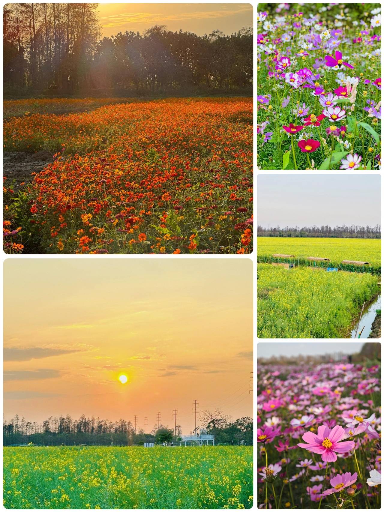 这里也有属于自己的莫奈花园了,场地内有硫华菊、格桑花、油菜花、桃花和三角梅等百花争艳,走进花丛中,就像被花海包围住了,拍照会很出片喔!