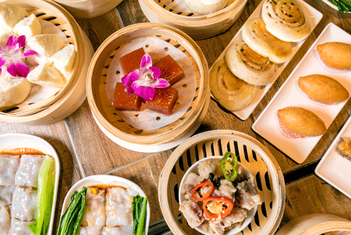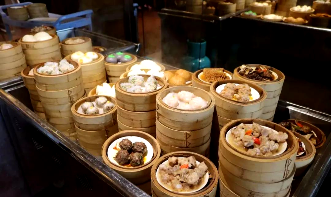 排骨、肉丸、豉油鸡脚、火腿、干蒸、猪肚、流沙包等