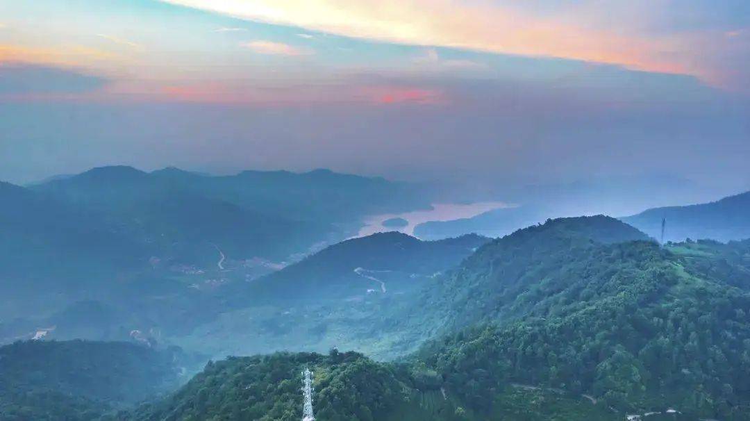 四周崇山峻岭,山峰叠翠,云雾缭绕