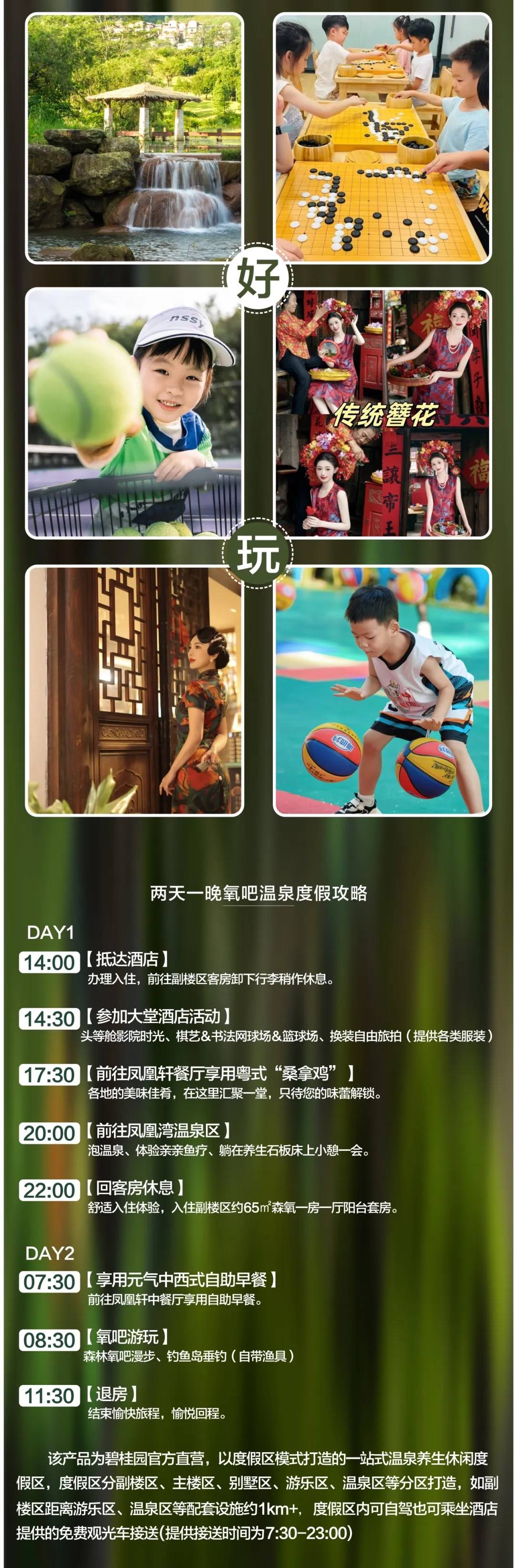 2、温泉等游玩项目实际开放时间请以酒店公布为准,如若遇上不可抗力因素无法开放,不予退款,具体开放情况以现场为准,请见谅