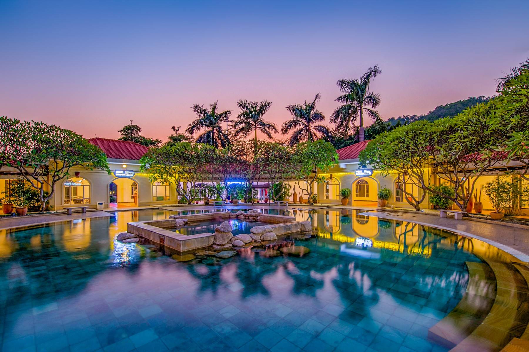 这里总占地面积达5000亩,背依青山,环抱温泉,依托大规模生态自然环境。这是钢筋水泥的大城市里难得的养生之地。