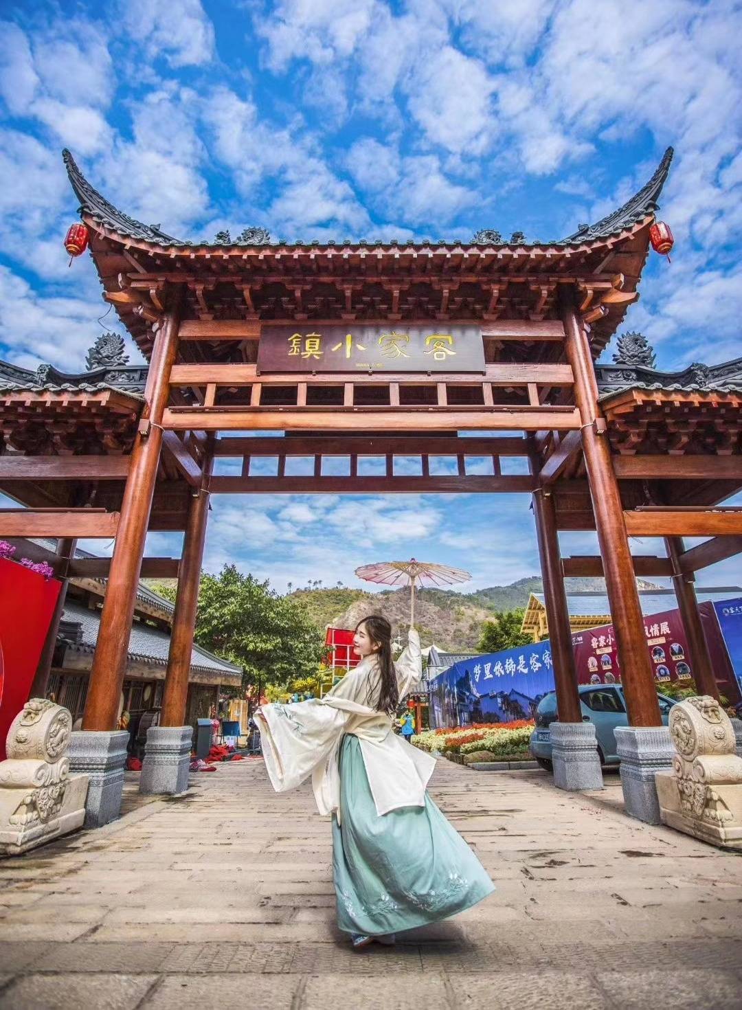 穿上美美的汉服来客家小镇打卡