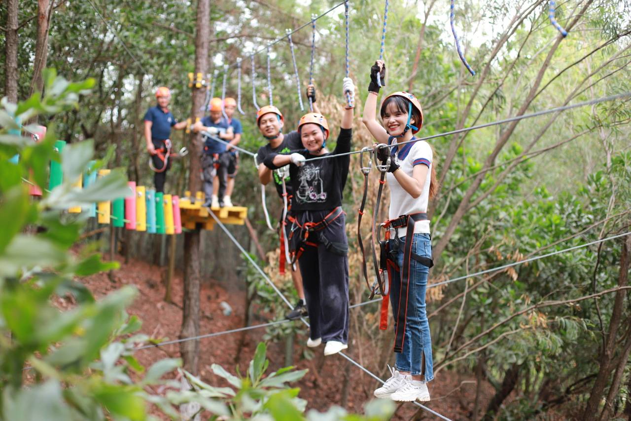 通过在林间设置并搭建各种难易不同、风格迴异、刺激好玩的闯关项目,让参与者能够体验高空攀爬与自由滑翔的,并感受在树上攀爬与林间穿越的刺激。