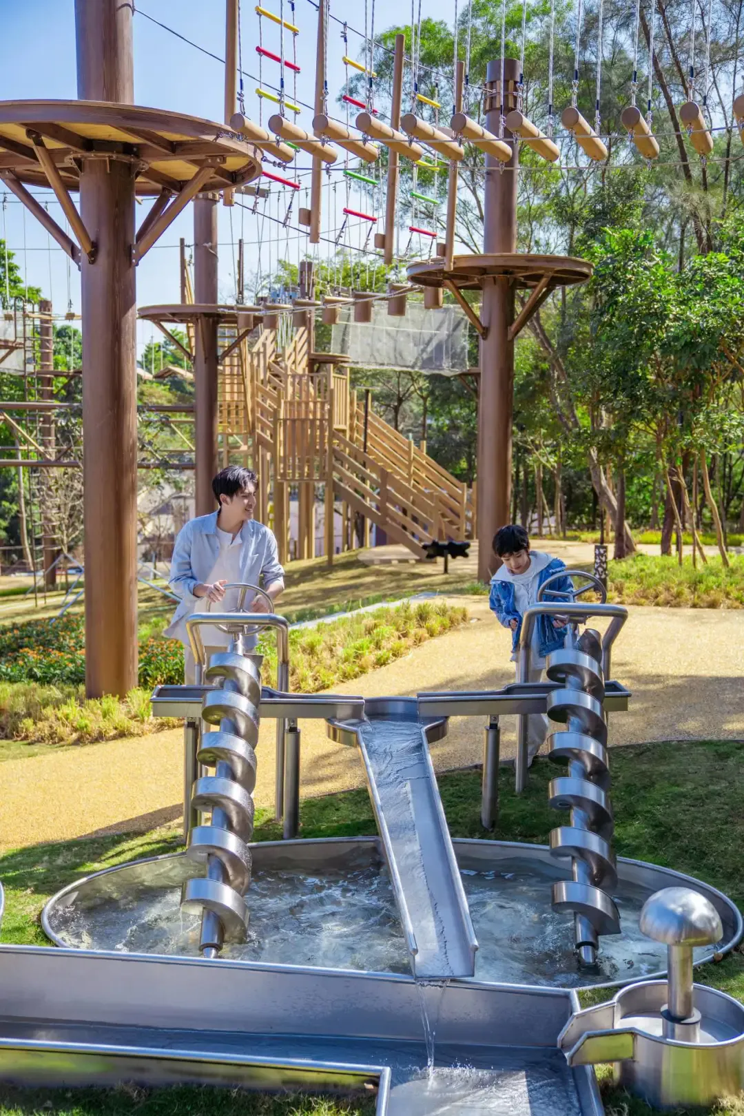 从吊桥、攀爬网、平衡木、无动力设施到戏水设备,