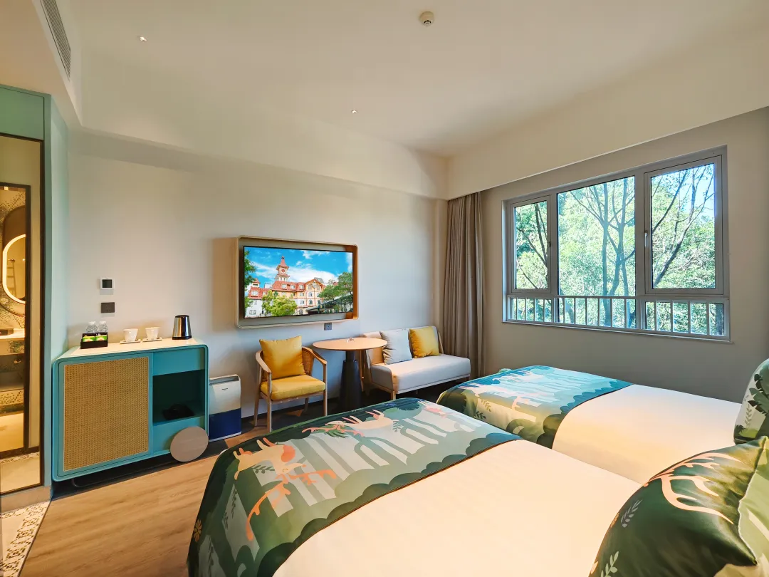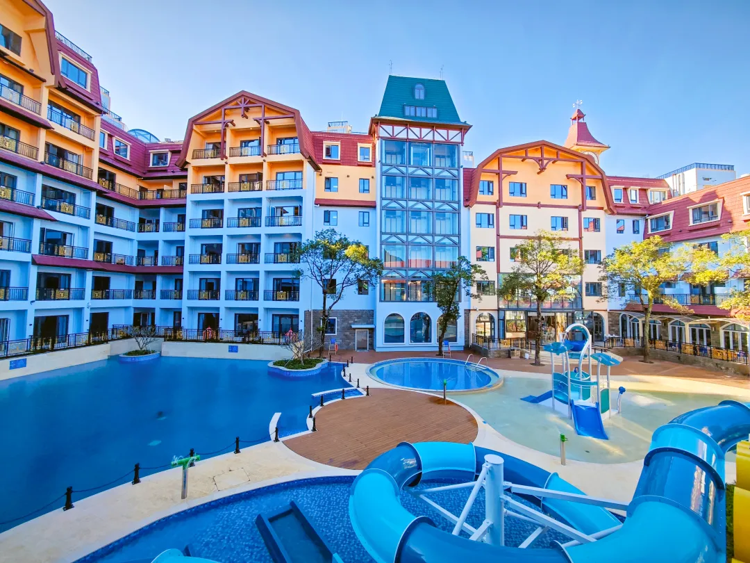 酒店拥有300间(套)客房,被森林绿意环绕又充满童话感的五彩城堡营造出温馨的童趣空间,在保持原有欧式童话建筑风格的同时,融入了丰富的亲子元素。