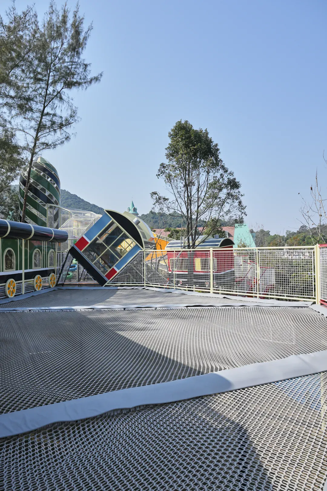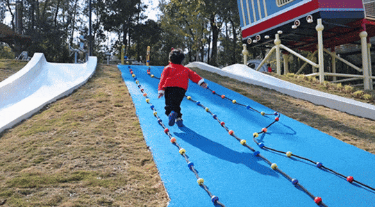 还有摇晃吊桥、狭窄平衡木、高难度攀爬网等