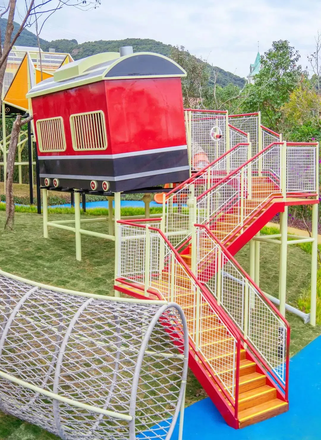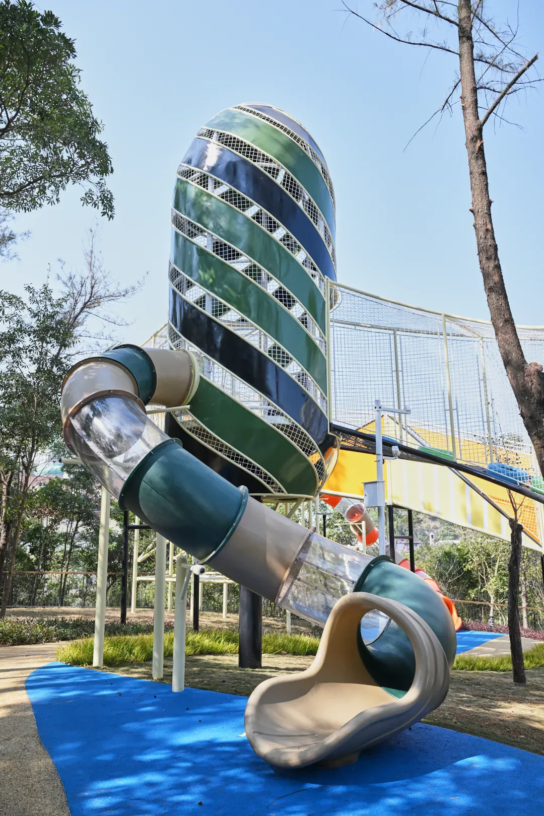 结合秋千、滑梯、攀岩等无动力设施,