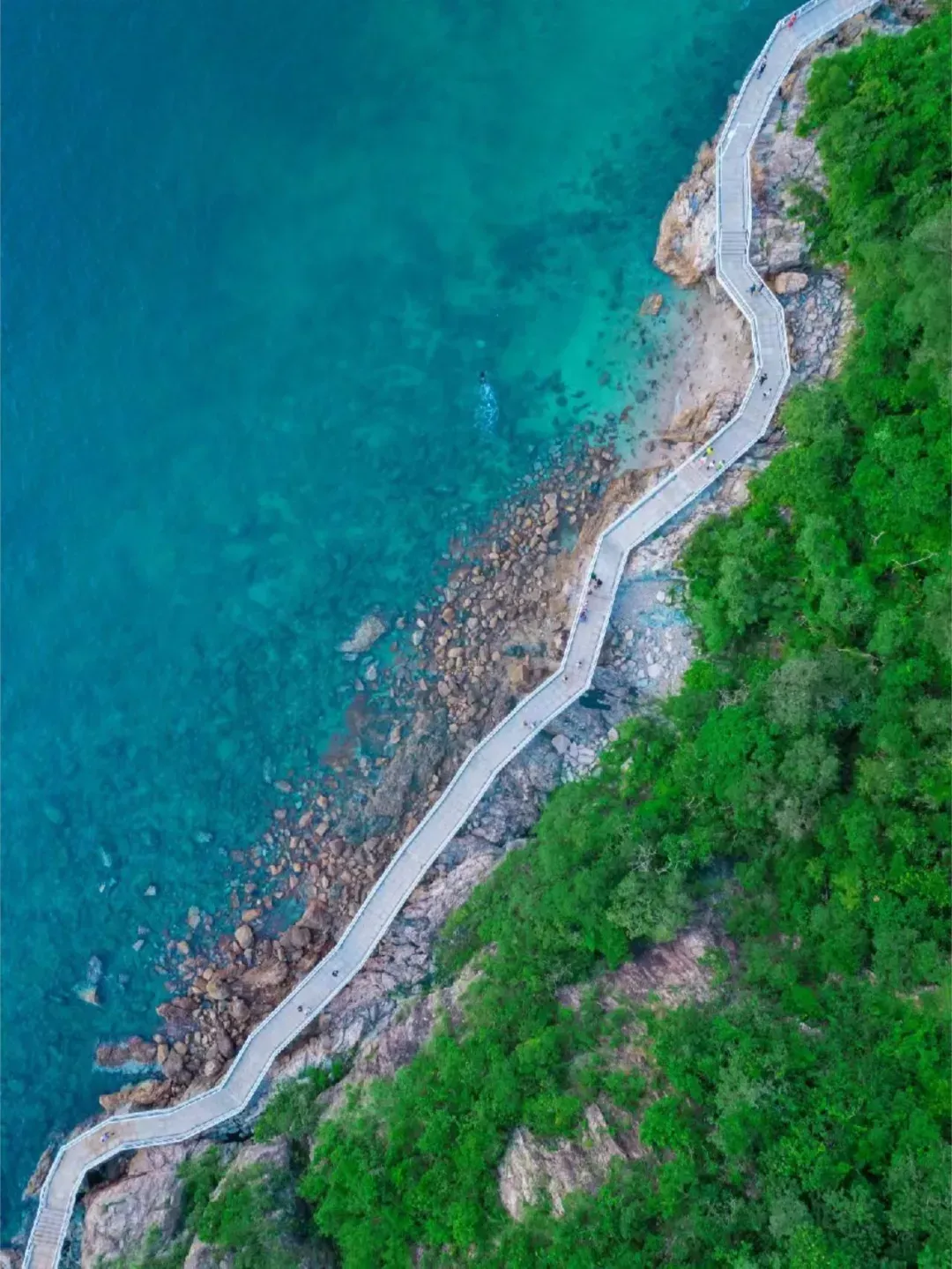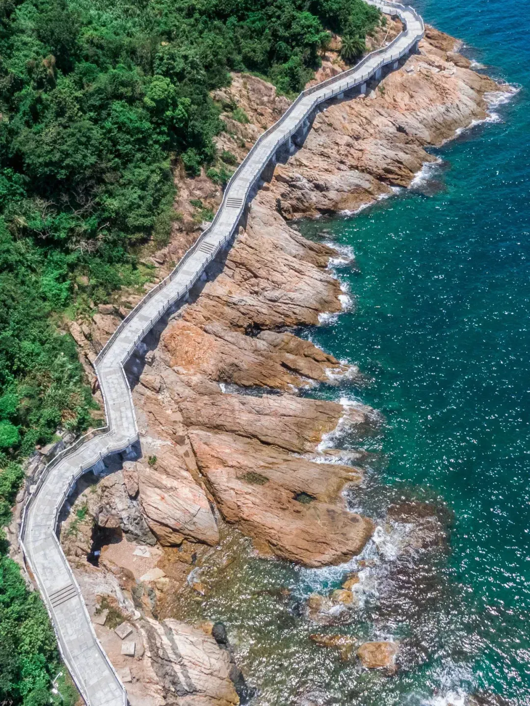 整个栈道都被绿荫与海水包围着,