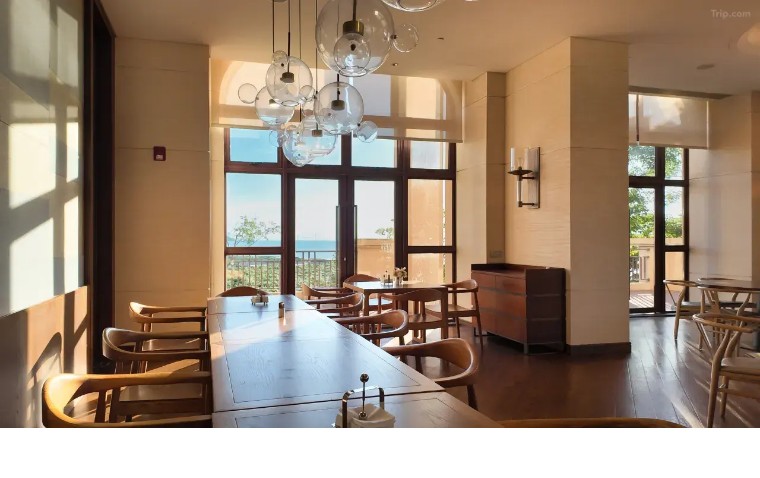 共可设逾200个座位,坐拥海湾全景,设有室内、室外座位和一个私人包厢,提供丰盛的自助餐及中式或西式菜肴零点服务 ;户外平台亦可欣赏到十分靓丽的夕阳美景
