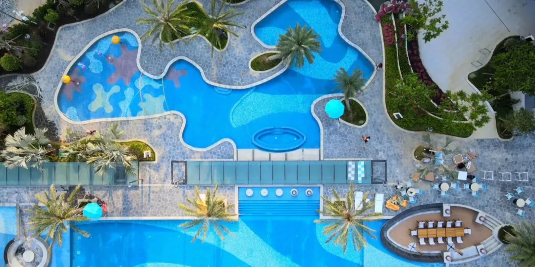 300m²的户外无边际泳池+230m²的儿童游泳池,